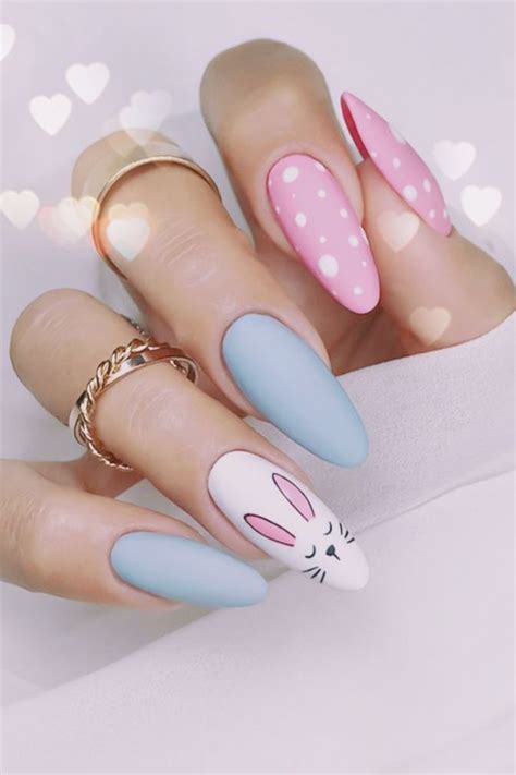 Bunnies are another symbol of Easter, so add them to your nail art for a cute and whimsical touch. You can paint a simple bunny outline or get creative with details like fluffy ears and whiskers.
